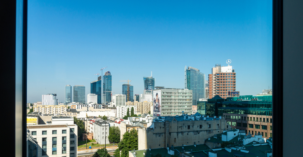 ● Widok na panoramę Warszawy.