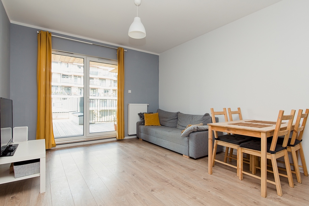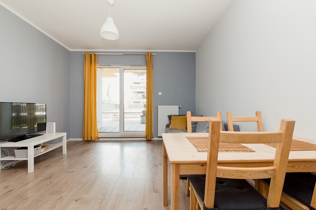 Apartament na wynajem z dużym tarasem w świetnej cenie? Jest. Dobry i szybki dojazd do Centrum dzięki rozbudowanej komunikacji? Jest. Cicha i spokojna okolica? Jest. Bliskość terenów zielonych na czele z oddalonym o zaledwie 150m Parkiem Żerańskim? Jest.